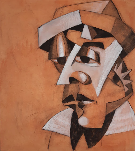 Die dritte Arbeit zeigt einen verschachtelten Kopf. Mehrere Gesichter werden hier eingebaut. Männlich / weiblich / freudig / mürrisch.